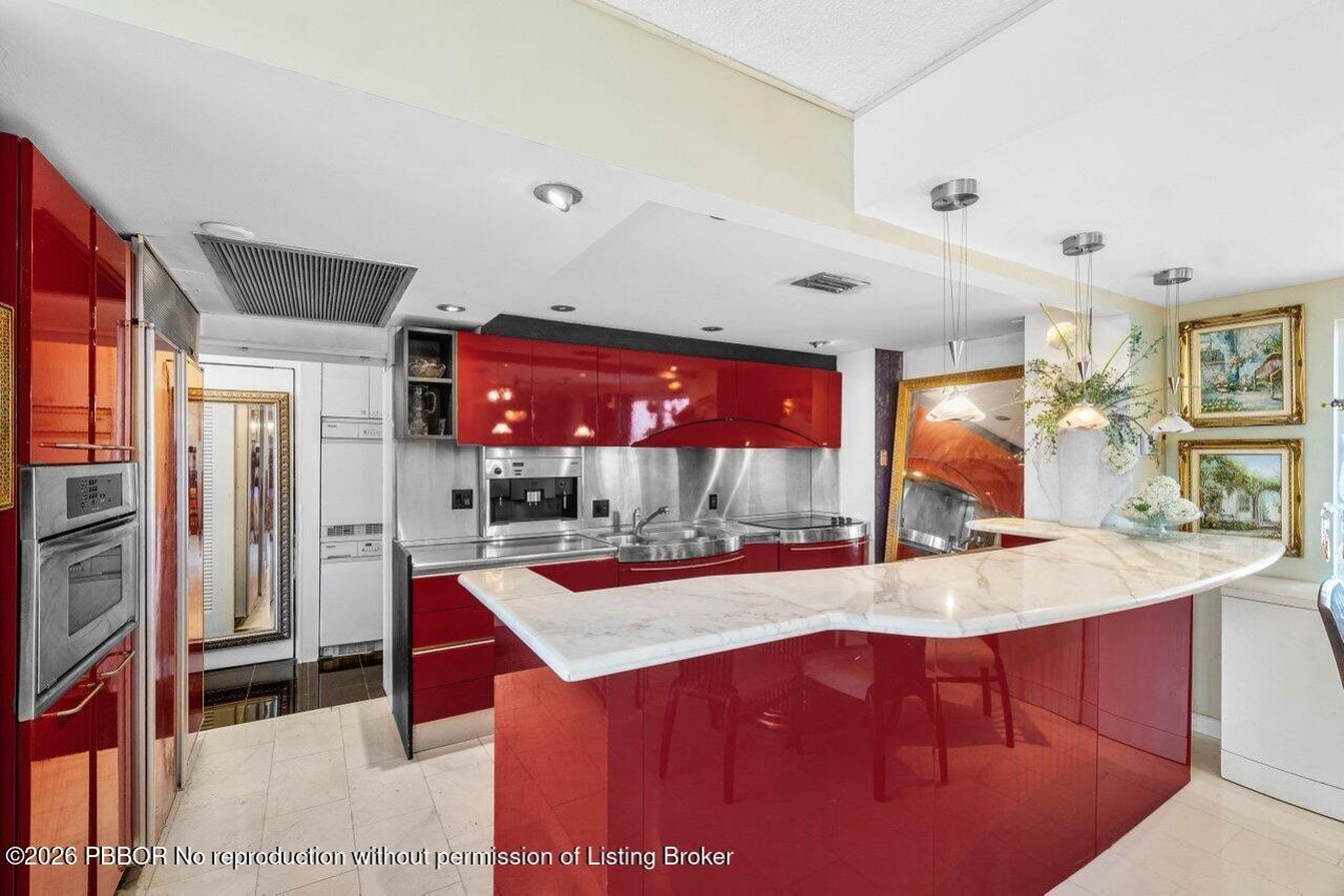 Experience coastal living at its finest in this beautifully designed 2-bedroom, 2-bathroom residence featuring stunning ocean views. Floor-to-ceiling impact sliders create a seamless connection between indoor living and the spectacular waterfront setting. The thoughtfully designed open-concept kitchen is a standout feature, crafted by renowned Italian maker Snaidero. Clean lines, premium finishes, and generous workspace make it perfect for both everyday living and elegant entertaining. Thassos m...Experience coastal living at its finest in this beautifully designed 2-bedroom, 2-bathroom residence featuring stunning ocean views. Floor-to-ceiling impact sliders create a seamless connection between indoor living and the spectacular waterfront setting. The thoughtfully designed open-concept kitchen is a standout feature, crafted by renowned Italian maker Snaidero. Clean lines, premium finishes, and generous workspace make it perfect for both everyday living and elegant entertaining. Thassos marble flooring, two tankless water heaters and an Miele Washer and dryer. With its elevated vantage point, modern layout, and designer kitchen, this residence delivers the ideal blend of style, comfort, and waterfront Florida coastal living. 2774 S Ocean INC is a well-managed, impeccably maintained, full-service building with a full-time doorman and highly sought-after amenities: two Har-Tru tennis courts, a fitness center, heated pool, climate-controlled bike storage, a residents social room, and an outdoor BBQ area. Offering private and guest parking, onsite management, and a prime location near The Four Seasons, just minutes to downtown Palm Beach, West Palm Beach, and the airport.